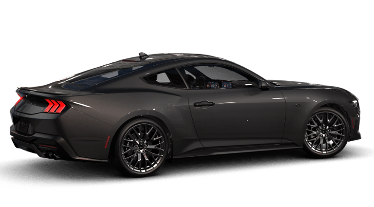 Wrapped in a striking Gray exterior, the Mustang GT Premium exudes a bold and confident presence. The 20-inch premium-painted aluminum wheels, integrated turn signals, and active valve performance exhaust with quad chrome tailpipes enhance the vehicle's sleek and athletic styling.
