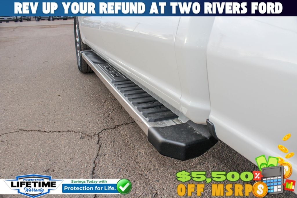 This Lariat model is packed with premium features that elevate your driving experience. The stunning White exterior with the Tough Bed Spray-In Bedliner ensures your truck looks and performs at the highest level, while the FX4 Off-Road Package and Tow/Haul Package provide the capability and confidence to tackle any terrain or towing task.