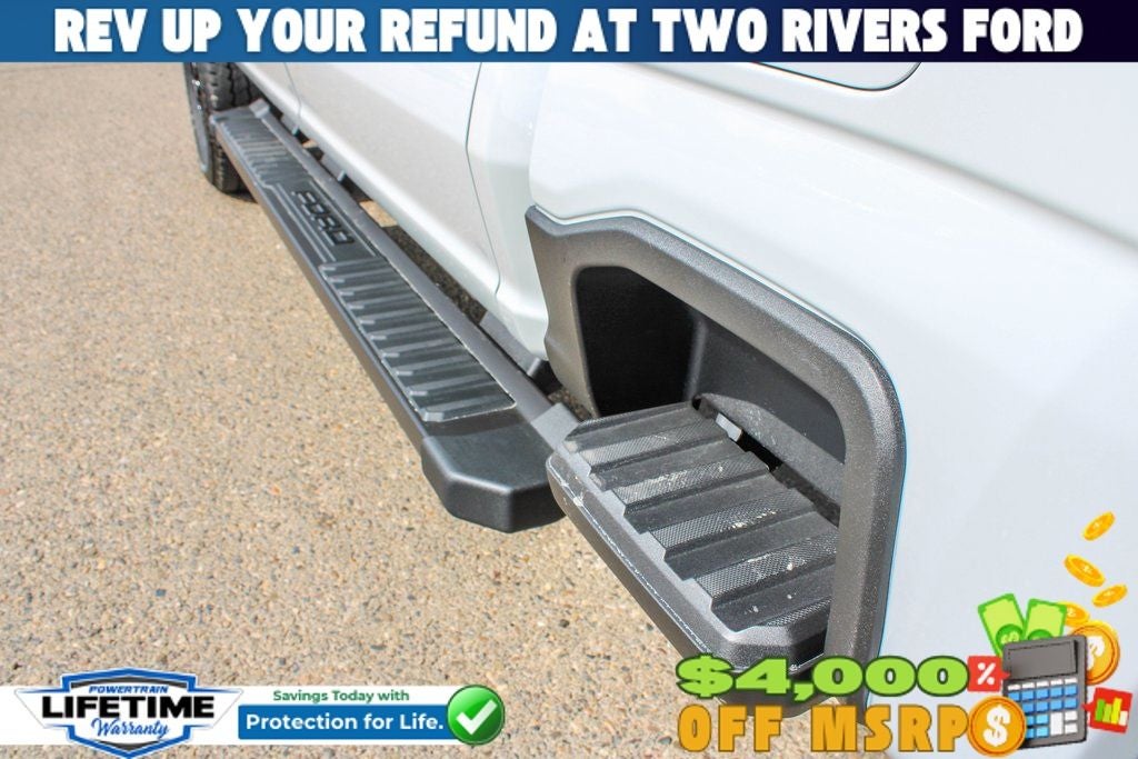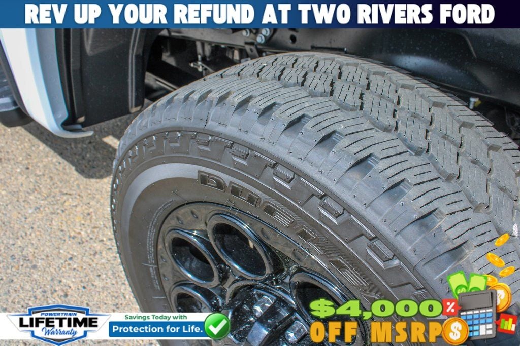 Designed to conquer the toughest terrain, this F-350SD Lariat is equipped with the FX4 Off-Road Package, which includes Hill Descent Control, off-road-tuned shock absorbers, and skid plates to protect vital components. The Black Appearance Package adds a bold, aggressive look with its black accents and premium painted wheels.