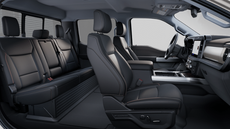 Step inside and experience the ultimate in comfort and convenience. The Lariat Ultimate Package includes features like a 360-degree camera, rear view camera with reverse brake assist, Pre-Collision Assist, Lane-Keeping System, and more. Enjoy the premium sound of the B&O Unleashed Sound System, stay connected with SYNC 4, and keep your hands warm on the heated steering wheel.