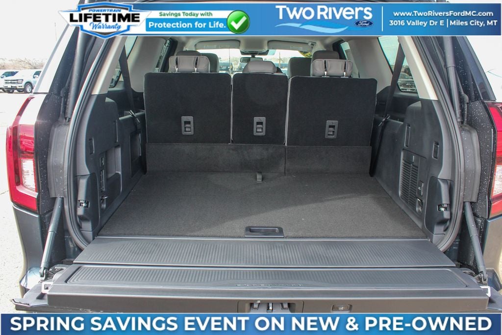 26mm Engine Radiator, 2nd Row Power-Folding Captain's Chairs, 2nd Row Pwr-Folding 40/20/40 ActiveX-Trimmed Bench Seat, 3.73 Axle Ratio, 360-Degree Zone Lighting, 3rd Row Flexible Seating (40/20/40), 3rd row seats: split-bench, 3rd Row Vinyl Seats, 4-Door Intelligent Access (Lock/Unlock), 4-Way Manual Head Restraints, 4-Wheel Disc Brakes, 6 Speakers, ABS brakes, Active Air Dam, ActiveX-Trimmed Front Heated Captain's Chairs, Air Conditioning, Alloy wheels, AM/FM radio: SiriusXM with 360L, Apple CarPlay/Android Auto, Auto High-beam Headlights, Auto-dimming Rear-View mirror, Automatic temperature control, BlueCruise (equipment + 1-Year + 90-Day Plan), Brake assist, Bumpers: body-color, Cloth Front Captain's Chairs, Compass, Delay-off headlights, Driver door bin, Driver vanity mirror, Dual front impact airbags, Dual front side impact airbags, Dual Power-Folding Sideview Mirrors with Autofold, Electronic Stability Control, Emergency communication system: 911 Assist, Engine Block Heater, Equipment Group 202A Touring Package, Exterior Parking Camera Rear, Flex Powered Console, Ford Connectivity Package (1-Year Included), Ford Digital Experience, Ford Split Gate, Four wheel independent suspension, Front and 2nd Rows Floor Liners Without Carper Mats, Front anti-roll bar, Front Bucket Seats, Front Center Armrest, Front dual zone A/C, Front License Plate Bracket, Front reading lights, Front Side Laminated Glass, Fully automatic headlights, Heated door mirrors, Heated Steering Wheel, Heavy-Duty Trailer Tow, Illuminated entry, Integrated Trailer Brake Control, Intersection Assist, Low tire pressure warning, Memory Driver Seat, Navigation System, Occupant sensing airbag, Outside temperature display, Overhead airbag, Overhead console, Panic alarm, Passenger door bin, Passenger vanity mirror, Power door mirrors, Power driver seat, Power passenger seat, Power steering, Power Tilt/Telescopic Steering Wheel with Memory, Power windows, Pro Power Onboard - 400W, Radio data system, Radio: AM/FM Stereo with MP3 Capable, Rain Sensitive Windshield Wipers, Rear air conditioning, Rear anti-roll bar, Rear reading lights, Rear window defroster, Rear window wiper, Reclining 3rd row seat, Remote keyless entry, Security system, SiriusXM with 360L, Speed control, Speed-sensing steering, Speed-Sensitive Wipers, Split folding rear seat, Spoiler, Steering wheel mounted audio controls, Tachometer, Telescoping steering wheel, Tilt steering wheel, Traction control, Trip computer, USB Ports, Variably intermittent wipers, Voltmeter, Wheels: 18 x 8.5 Dark Alloy Painted Aluminum.