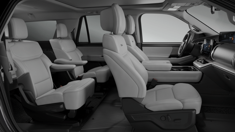 10 Speakers, 2nd Row Power-Folding Captain's Chairs, 3.73 Axle Ratio, 3rd row seats: split-bench, 4-Wheel Disc Brakes, ABS brakes, Air Conditioning, Alloy wheels, AM/FM radio: SiriusXM with 360L, Apple CarPlay/Android Auto, Auto High-beam Headlights, Auto-dimming door mirrors, Auto-dimming Rear-View mirror, Automatic temperature control, Black Onyx Painted Power Deployable Running Boards, BlueCruise (equipment + 1-Time Purchase), BlueCruise Equipped (90-Day Trial), Brake assist, Bumpers: body-color, Compass, Delay-off headlights, Driver door bin, Driver vanity mirror, Driver's Package, Dual front impact airbags, Dual front side impact airbags, Electronic Stability Control, Emergency communication system: 911 Assist, Engine Block Heater, Equipment Group 600A Standard Package, Exterior Parking Camera Rear, Ford Connectivity Package (1-Time Purchase), Ford Connectivity Package (1-Year Included), Ford Digital Experience, Four wheel independent suspension, Front and 2nd Rows Floor Liners Without Carper Mats, Front anti-roll bar, Front Bucket Seats, Front Center Armrest, Front dual zone A/C, Front License Plate Bracket, Front reading lights, Fully automatic headlights, Garage door transmitter, Genuine wood dashboard insert, Genuine wood door panel insert, Heated and Ventilated Leather Front Captain's Chairs, Heated door mirrors, Heated front seats, Heated rear seats, Heated steering wheel, Illuminated entry, Intersection Assist, Leather steering wheel, Low tire pressure warning, Memory seat, Navigation System, Occupant sensing airbag, Outside temperature display, Overhead airbag, Overhead console, Panic alarm, Passenger door bin, Passenger vanity mirror, Power door mirrors, Power driver seat, Power moonroof: Vista Roof, Power passenger seat, Power steering, Power Tilt/Telescopic Steering Wheel with Memory, Power windows, Radio data system, Radio: B&O Play Unleashed, Radio: B&O Sound System by Bang and Olufsen, Rain sensing wipers, Rear air conditioning, Rear anti-roll bar, Rear reading lights, Rear window defroster, Rear window wiper, Reclining 3rd row seat, Remote keyless entry, Security system, SiriusXM with 360L, Speed control, Speed-sensing steering, Speed-Sensitive Wipers, Split folding rear seat, Spoiler, Steering wheel memory, Steering wheel mounted audio controls, Tachometer, Telescoping steering wheel, Tilt steering wheel, Traction control, Trip computer, Turn signal indicator mirrors, Variably intermittent wipers, Ventilated front seats, Voltmeter, Wheels: 20 x 8.5 Ebony Bright Machined Aluminum, Wheels: 22 x 9.0 Ebony Bright Machined Face Aluminum.