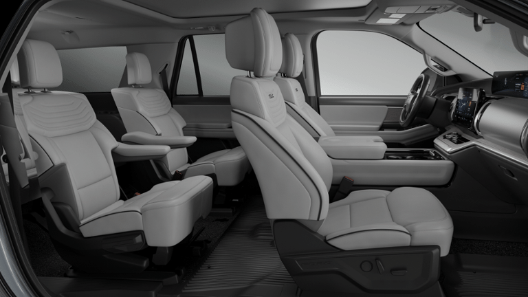 10 Speakers, 2nd Row Power-Folding Captain's Chairs, 3.73 Axle Ratio, 3rd row seats: split-bench, 4-Wheel Disc Brakes, ABS brakes, Air Conditioning, Alloy wheels, AM/FM radio: SiriusXM with 360L, Apple CarPlay/Android Auto, Auto High-beam Headlights, Auto-dimming door mirrors, Auto-dimming Rear-View mirror, Automatic temperature control, Black Headlamp Bezel with Satin Trim Applique, Black Onyx Painted Power Deployable Running Boards, BlueCruise (equipment + 1-Time Purchase), BlueCruise (equipment + 1-Year + 90-Day Plan), BlueCruise Equipped (90-Day Trial), Brake assist, Bumpers: body-color, Carbon Black Front Bumper with Lit Grille Bar, Chrome Roof Rails with Black End Caps, Compass, Delay-off headlights, Driver door bin, Driver vanity mirror, Driver's Package, Dual front impact airbags, Dual front side impact airbags, Electronic Stability Control, Emergency communication system: 911 Assist, Engine Block Heater, Engine Sound Enhancer, Equipment Group 600A Standard Package, Exterior Parking Camera Rear, Ford Connectivity Package (1-Time Purchase), Ford Connectivity Package (1-Year Included), Ford Digital Experience, Four wheel independent suspension, Front and 2nd Rows Floor Liners Without Carper Mats, Front anti-roll bar, Front Bucket Seats, Front Center Armrest, Front Door Scuff Plates with Met Insert and Bright Rear, Front dual zone A/C, Front License Plate Bracket, Front reading lights, Fully automatic headlights, Garage door transmitter, Genuine wood dashboard insert, Genuine wood door panel insert, Heated and Ventilated Leather Front Captain's Chairs, Heated door mirrors, Heated front seats, Heated rear seats, Heated steering wheel, High Flow Exhaust System, Illuminated entry, Intersection Assist, Leather steering wheel, Low tire pressure warning, Memory seat, Multicontour Active Motion Lthr Frnt Captains Chairs, Navigation System, Occupant sensing airbag, Outside temperature display, Overhead airbag, Overhead console, Panic alarm, Passenger door bin, Passenger vanity mirror, Platinum Ultimate Interior Package, Platinum Ultimate Package, Polished Stainless Steel Beltline Molding, Power door mirrors, Power driver seat, Power moonroof: Vista Roof, Power passenger seat, Power steering, Power Tilt/Telescopic Steering Wheel with Memory, Power windows, Radio data system, Radio: B&O Play Unleashed, Radio: B&O Sound System by Bang and Olufsen, Rain sensing wipers, Rear air conditioning, Rear anti-roll bar, Rear reading lights, Rear Seat Radio Controls, Rear Side Windows Laminated Glass, Rear window defroster, Rear window wiper, Reclining 3rd row seat, Remote keyless entry, Satin Aluminum Expedition Lettering on Side and Hood, Satin Aluminum Platinum Badge on Tailgate, Security system, Signature Grille Lighting, SiriusXM with 360L, Speed control, Speed-sensing steering, Speed-Sensitive Wipers, Split folding rear seat, Spoiler, Steering wheel memory, Steering wheel mounted audio controls, Tachometer, Telescoping steering wheel, Tilt steering wheel, Traction control, Trip computer, Turn signal indicator mirrors, Variably intermittent wipers, Ventilated front seats, Voltmeter, Wheels: 20 x 8.5 Ebony Bright Machined Aluminum, Wheels: 22 x 9.0 Ebony Bright Machined Face Aluminum, Wheels: 24 x 9.5 Tarnished Dark Metallic.
