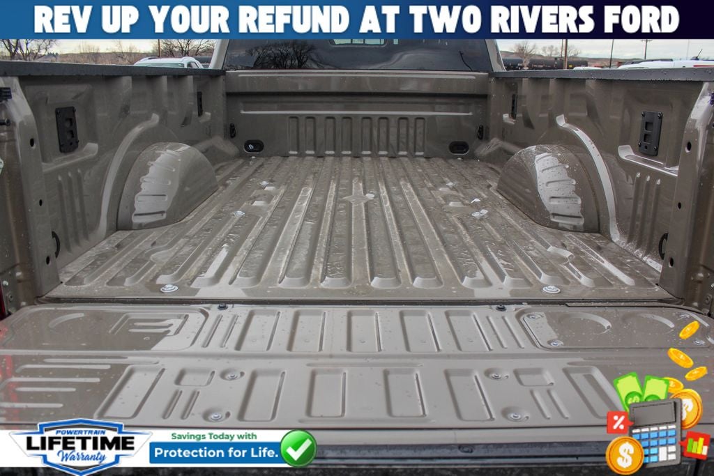 4WD, 190 Amp Alternator, 4-Wheel Disc Brakes, 410 Amp Dual Alternators, 6 Speakers, ABS brakes, Air Conditioning, Alloy wheels, AM/FM radio, Auto High-beam Headlights, Brake assist, Bumpers: chrome, Cloth 40/20/40 Split Bench Seat, Compass, Delay-off headlights, Driver door bin, Driver vanity mirror, Dual AGM 68 AH Battery, Dual front impact airbags, Dual front side impact airbags, Electronic Stability Control, Emergency communication system: SYNC 4 911 Assist, Engine Block Heater, Exterior Parking Camera Rear, Front anti-roll bar, Front Center Armrest w/Storage, Front fog lights, Front License Plate Bracket, Front reading lights, Fully automatic headlights, FX4 Off-Road Package, Heated door mirrors, Hill Descent Control, Illuminated entry, Internet access capable: 5G Modem - Ford Connectivity Package, Low tire pressure warning, Off-Road Specifically Tuned Shock Absorbers, Order Code 613A, Outside temperature display, Overhead airbag, Overhead console, Panic alarm, Passenger door bin, Passenger vanity mirror, Power door mirrors, Power driver seat, Power steering, Power windows, Privacy Glass, Rapid-Heat Supplemental Cab Heater, Rear reading lights, Rear step bumper, Remote keyless entry, Security system, Speed control, Split folding rear seat, Steering wheel mounted audio controls, SYNC 4, Tachometer, Telescoping steering wheel, Tilt steering wheel, Traction control, Trip computer, Turn signal indicator mirrors, Unique FX4 Off-Road Box Decal, Variably intermittent wipers, Wheels: 18 Sparkle Silver Painted Cast Aluminum, 4WD.