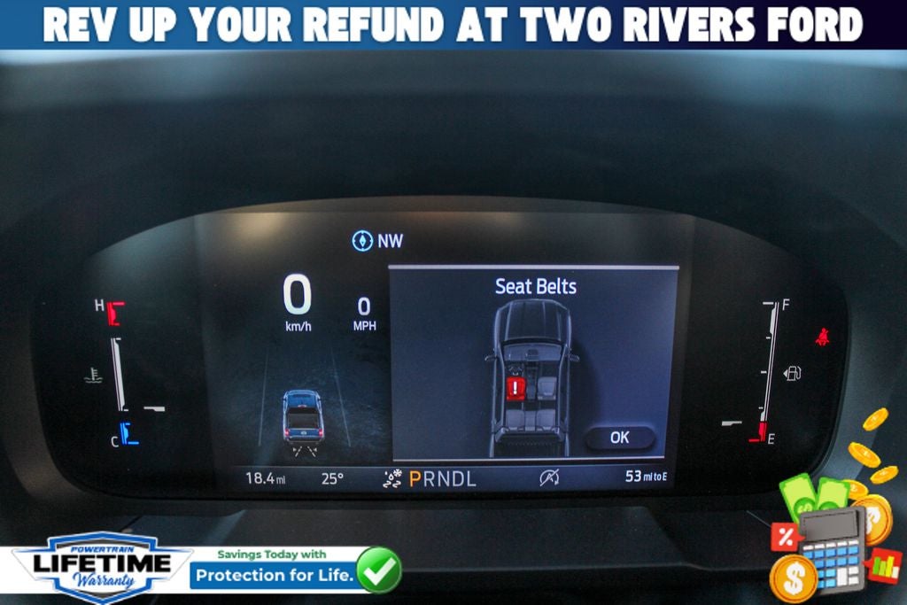 2.91 Axle Ratio, 4-Wheel Disc Brakes, 4K Tow Package, 6 Speakers, ABS brakes, Air Conditioning, Alloy wheels, AM/FM radio: SiriusXM with 360L, Apple CarPlay/Android Auto, Auto High Beams, Auto High-beam Headlights, Automatic temperature control, BLIS with Cross-Traffic Alert and Trailer Coverage, Brake assist, Bumpers: body-color, Compass, Delay-off headlights, Driver door bin, Driver vanity mirror, Dual front impact airbags, Dual front side impact airbags, Electronic Stability Control, Emergency communication system: SYNC 4 911 Assist, Equipment Group 302A, Exit Warning, Exterior Parking Camera Rear, Ford Co-Pilot360, Ford Connectivity Package (1-Year Included), Four wheel independent suspension, Front and Rear Floor Liners Without Carpet Mats, Front anti-roll bar, Front Bucket Seats, Front Center Armrest, Front reading lights, Fully automatic headlights, Heated Mirror with Painted Black Skull Caps, Heated Seats, Illuminated entry, Internet access capable: 5G Modem - Ford Connectivity Package, Intersection Assist, Knee airbag, Lane-Keeping System, LED Box Lighting, Low tire pressure warning, Occupant sensing airbag, Outside temperature display, Overhead airbag, Overhead console, Panic alarm, Passenger door bin, Passenger vanity mirror, Power door mirrors, Power Glass Manual-Folding Mirrors, Power steering, Power windows, Pre-Collision Assist with Automatic Emergency Braking, Pro Power Onboard - 400W, Radio data system, Radio: AM/FM Stereo with 6 Speakers, Rear anti-roll bar, Rear Cross Traffic Braking, Rear Parking Sensors, Rear seat center armrest, Rear step bumper, Rear-View Camera, Remote keyless entry, Remote Start System, Security system, SiriusXM with 360L, SiriusXM with 360L (3-Year Plan), Soft Vinyl Wrapped Heated Steering Wheel, Speed control, Speed-sensing steering, Steering wheel mounted audio controls, SYNC 4 with Enhanced Voice Recognition, Telescoping steering wheel, Tilt steering wheel, Tough Bed Spray-in Bedliner, Traction control, Trailer Brake Controller, Trailer Hitch (class III) 2 Receiver, Trip computer, Unique Cloth Front Bucket Seats, Upgraded Cooling Fan, Wheels: 17 Carbonized Gray Painted Aluminum, XLT Luxury Package.